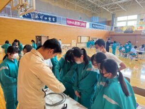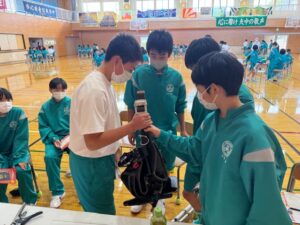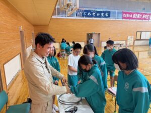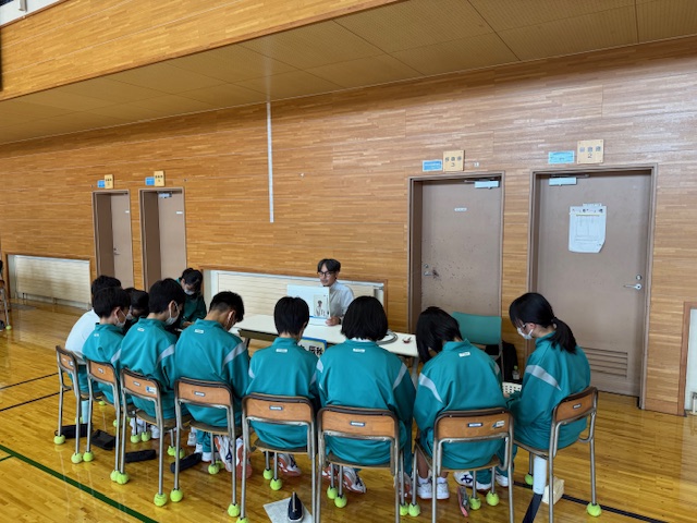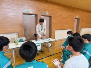 矢巾町内の中学校で、1年生を対象に「電気工事の魅力」を伝える出前授業を行いました。